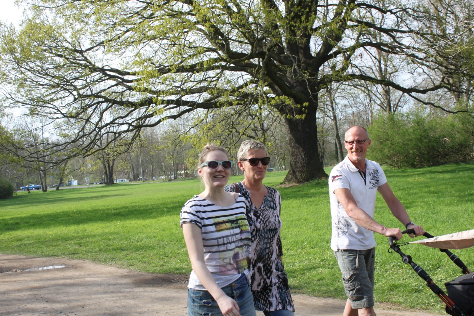 Nach dem obligatorischen Essen verschlug es uns allesamt an den Auensee. Die Fahrt dort hin gestaltet sich als ziemlich herausfordernd. Zuerst bekamen es vier Erwachsene nicht hin, meinen Autositz ordentlich anzuschnallen. Ihr wollt nicht wissen, wie sie das letztendlich gelöst haben. So wirklich wichtig scheint ihnen die Fahrsicherheit nicht zu sein. Zudem war ich für den Autositz viel zu groß, sodass ich wie ein Schluck Wasser dort drinnen hing. Jeder Orthopäde würde bei der Haltung mit dem Kopf schütteln.